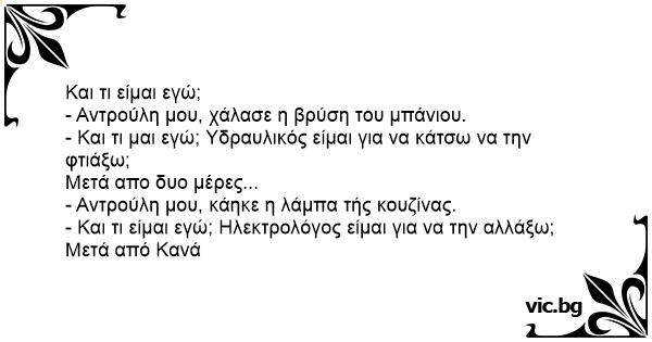 - Αντρούλη μου, χάλασε η βρύση του μπάνιου.