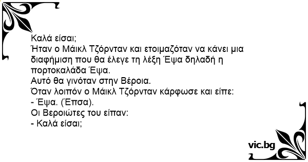 Ήταν ο Μάικλ Τζόρνταν και ετοιμαζόταν να κάνει μια διαφήμιση που θα έλεγε τη λέξη Έψα δηλαδή η πορτοκαλάδα Έψα.