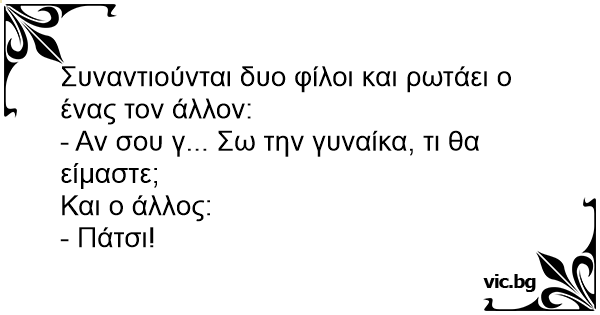 Συναντιούνται δυο φίλοι και ρωτάει ο ένας τον άλλον: