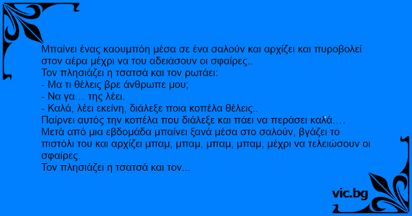 - Καλά ρε παιδί μου, θέλεις να γαμ…. Αλλά γιατί πυροβολείς στον αέρα;
