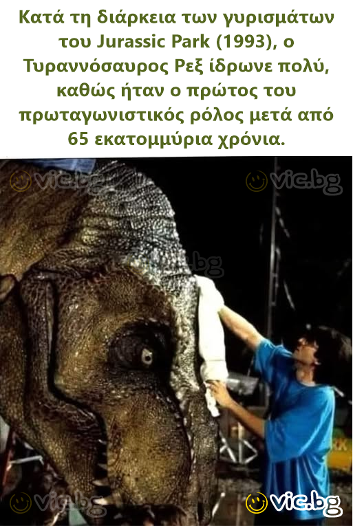 По време на снимките на Джурасик Парк (1993) тиранозавърът Рекс много се потеше, защото това беше първата му главна роля от 65 милиона години.