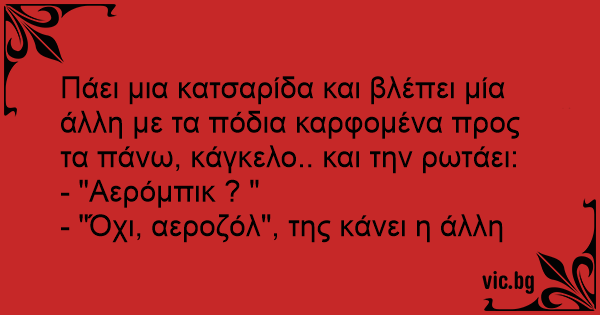 Πάει μια κατσαρίδα και βλέπει μία άλλη με τα πόδια καρφομένα προς τα πάνω, κάγκελο.. και την ρωτάει: