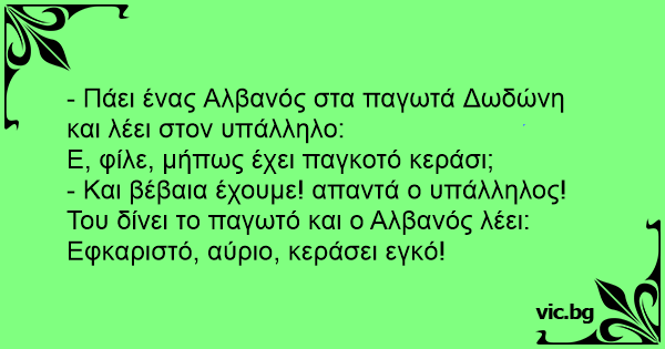 - Και βέβαια έχουμε! απαντά ο υπάλληλος! Του δίνει το παγωτό και ο Αλβανός λέει: