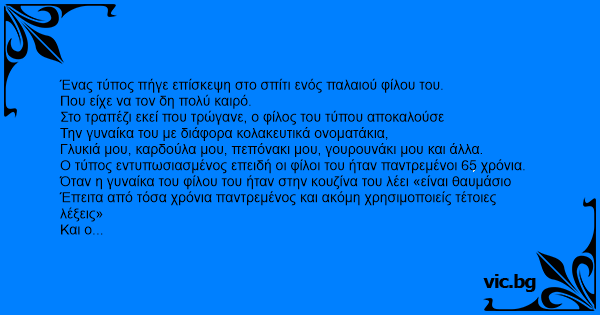 Και ο φίλος του κοιτάζοντας προς το ταβάνι «τι να κάνω, πριν από δέκα
