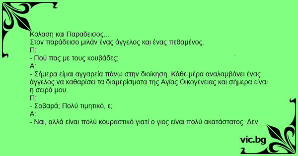 Στον παράδεισο μιλάν ένας άγγελος και ένας πεθαμένος.