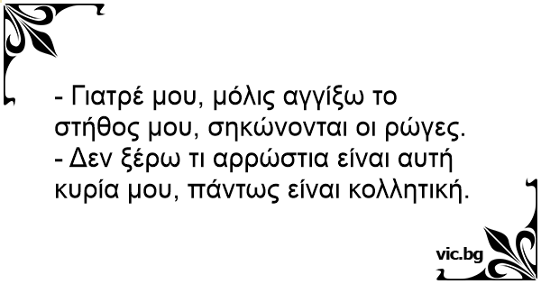 - Δεν ξέρω τι αρρώστια είναι αυτή κυρία μου, πάντως είναι κολλητική.