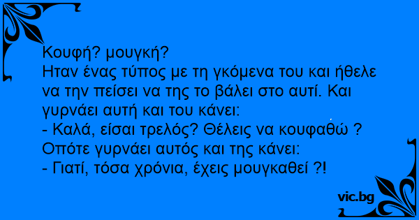 Ηταν ένας τύπος με τη γκόμενα του και ήθελε να την πείσει να της το βάλει στο αυτί. Και γυρνάει αυτή και του κάνει: