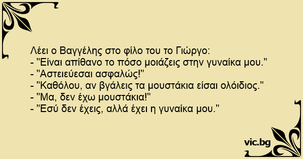 Λέει ο Βαγγέλης στο φίλο του το Γιώργο: