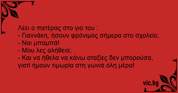 - Γιαννάκη, ήσουν φρόνιμος σήμερα στο σχολείο;