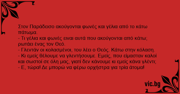 - Γλεντάν οι κολασμένοι, του λέει ο Θεός. Κάτω στην κόλαση.