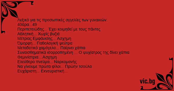 Λεξικό για τις προσωπικές αγγελίες των γυναικών: