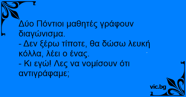 - Δεν ξέρω τίποτε, θα δώσω λευκή κόλλα, λέει ο ένας.