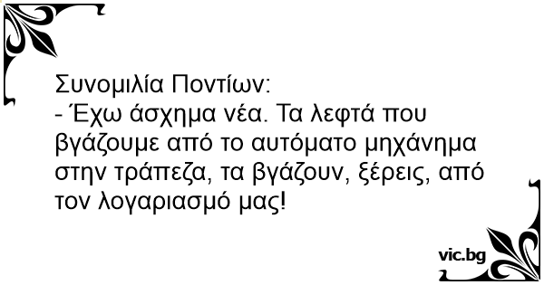 - Έχω άσχημα νέα. Τα λεφτά που βγάζουμε από το αυτόματο μηχάνημα στην τράπεζα, τα βγάζουν, ξέρεις, από τον λογαριασμό μας!