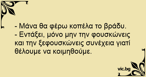 - Μάνα θα φέρω κοπέλα το βράδυ.