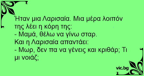 Ήταν μια Λαρισαία. Μια μέρα λοιπόν της λέει η κόρη της: