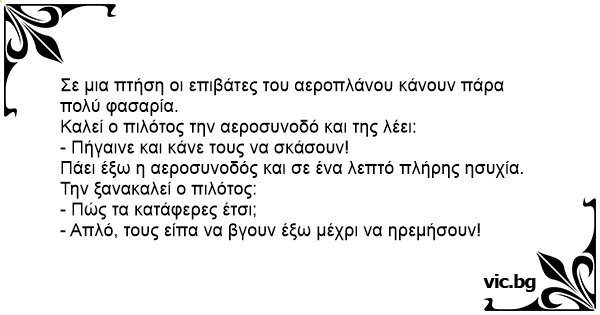 Καλεί ο πιλότος την αεροσυνοδό και της λέει: