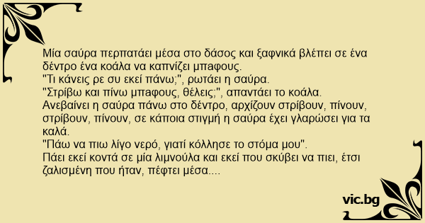 Μία σαύρα περπατάει μέσα στο δάσος και ξαφνικά βλέπει σε ένα δέντρο ένα κοάλα να καπνίζει μπaφους.