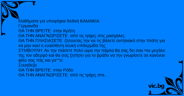 Μαθήματα για υποψήφια διεθνή ΚΑΜΑΚΙΑ: