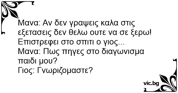 Μανα: Πως πηγες στο διαγωνισμα παιδι μου?