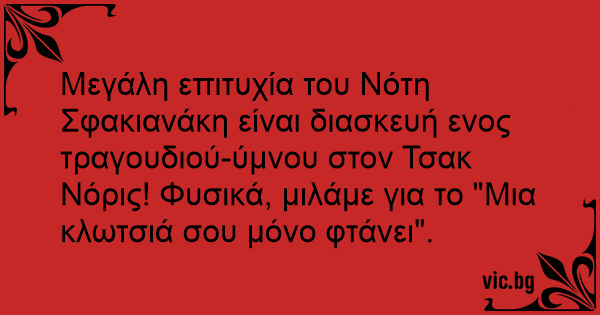 Μεγάλη επιτυχία του Νότη Σφακιανάκη είναι διασκευή ενος τραγουδιού-ύμνου στον Τσακ Νόρις! Φυσικά, μιλάμε για το "Μια κλωτσιά σου μόνο φτάνει".