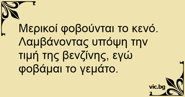 Μερικοί φοβούνται το κενό. Λαμβάνοντας υπόψη την τιμή της βενζίνης, εγώ φοβάμαι το γεμάτο.