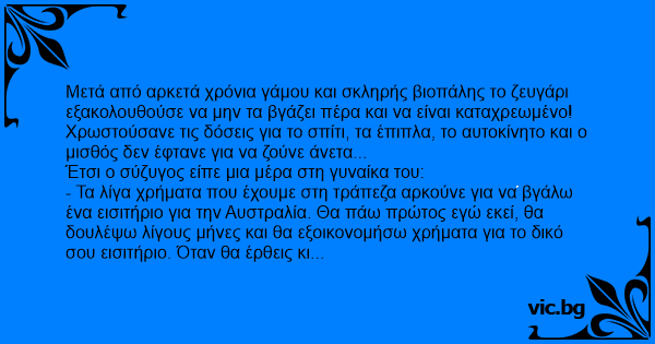 Σε τρεις μήνες ο σύζυγος παίρνει στην Αυστραλία ένα γράμμα από τη γυναίκα του: