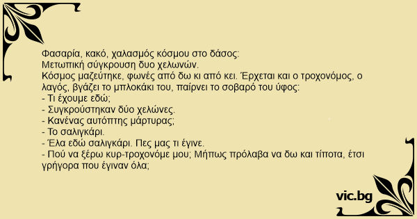 - Πού να ξέρω κυρ-τροχονόμε μου; Μήπως πρόλαβα να δω και τίποτα, έτσι γρήγορα που έγιναν όλα;