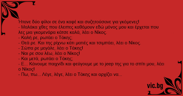 Ήτανε δύο φίλοι σε ένα καφέ και συζητούσανε για γκόμενες!