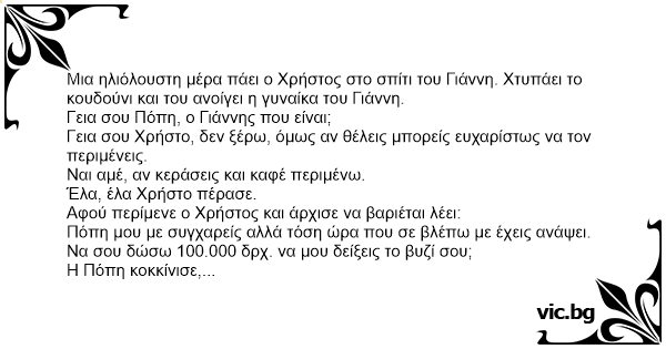 Μετά από λίγο μια που περνούσε η ώρα λέει ο Χρήστος:
