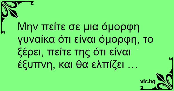 Μην πείτε σε μια όμορφη γυναίκα ότι είναι όμορφη, το ξέρει, πείτε της ότι είναι έξυπνη, και θα ελπίζει …