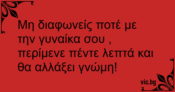 Μη διαφωνείς ποτέ με την γυναίκα σου , περίμενε πέντε λεπτά και θα αλλάξει γνώμη!