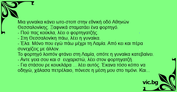 - Αντε γεια σου και σ ευχαριστώ, λέει στον φορτηγατζή.