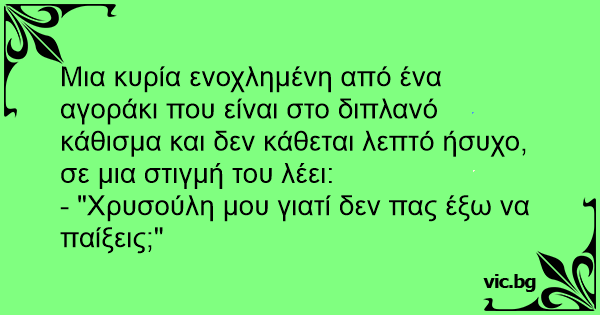 - "Χρυσούλη μου γιατί δεν πας έξω να παίξεις;"
