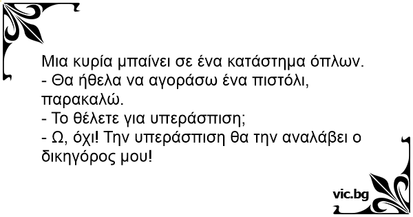 - Θα ήθελα να αγοράσω ένα πιστόλι, παρακαλώ.