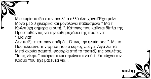 "Δεν ξέρω" ,λέει ο άλλος. "Πόνταρε όλα της τα λεφτά στο 29