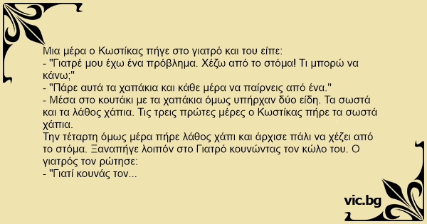 Μια μέρα ο Κωστίκας πήγε στο γιατρό και του είπε:
