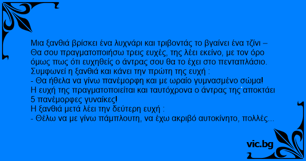 Η ξανθιά μετά λέει την δεύτερη ευχή :