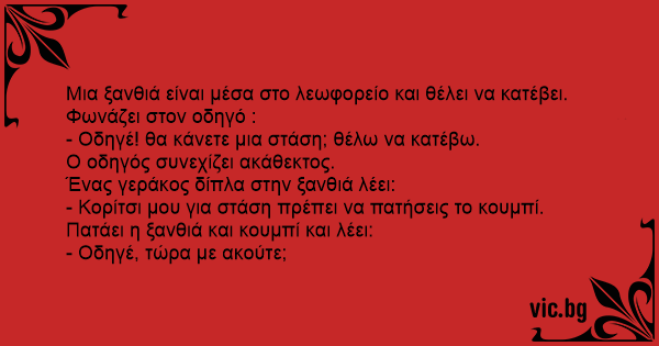 Μια ξανθιά είναι μέσα στο λεωφορείο και θέλει να κατέβει.