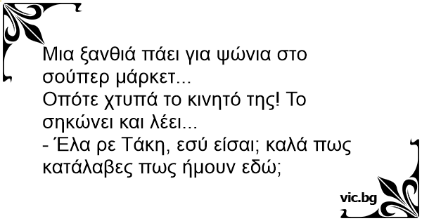 - Έλα ρε Τάκη, εσύ είσαι; καλά πως κατάλαβες πως ήμουν εδώ;