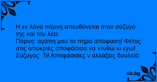 Πόρνη: αγάπη μου το πήρα απόφαση! Φέτος στις αποκριές αποφάσισα να ντυθώ κι εγώ!