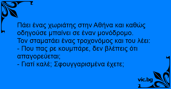 - Που πας ρε κουμπάρε, δεν βλέπεις ότι απαγορεύεται;