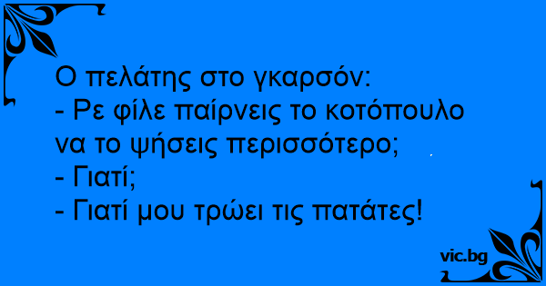 - Ρε φίλε παίρνεις το κοτόπουλο να το ψήσεις περισσότερο;