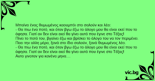 Μπαίνει ένας θυμωμένος καουμπόι στο σαλούν και λέει: