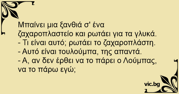 Μπαίνει μια ξανθιά σ' ένα ζαχαροπλαστείο και ρωτάει για τα γλυκά.