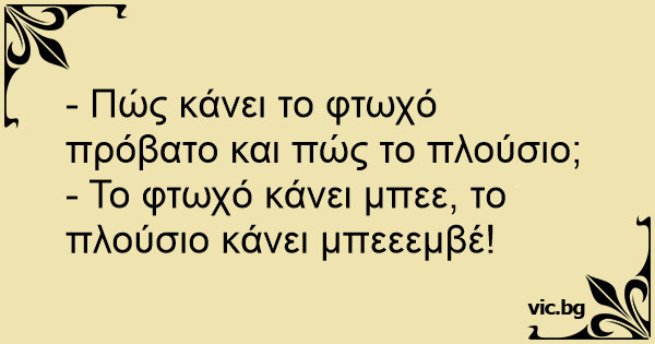 - Το φτωχό κάνει μπεε, το πλούσιο κάνει μπεεεμβέ!