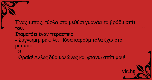 Ένας τύπος, τύφλα στο μεθύσι γυρνάει το βράδυ σπίτι του.