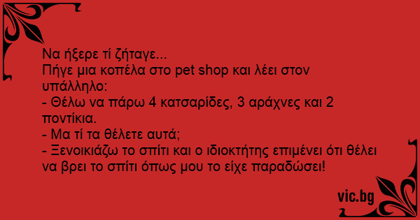 Πήγε μια κοπέλα στο pet shop και λέει στον υπάλληλο: