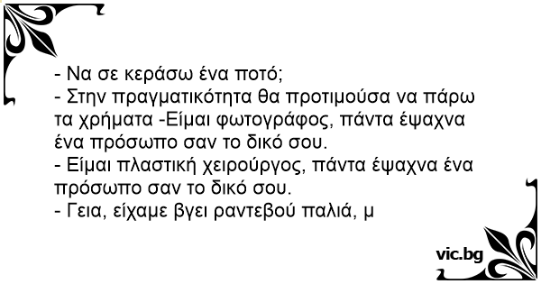 - Στην πραγματικότητα θα προτιμούσα να πάρω τα χρήματα -Είμαι φωτογράφος, πάντα έψαχνα ένα πρόσωπο σαν το δικό σου.