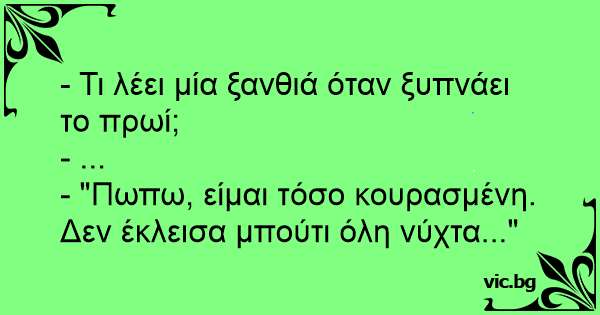 - Τι λέει μία ξανθιά όταν ξυπνάει το πρωί;