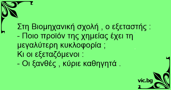 - Jasiu... Co osiągamy dzięki chemii? - Przewagę blondynek, Panie profesorze.